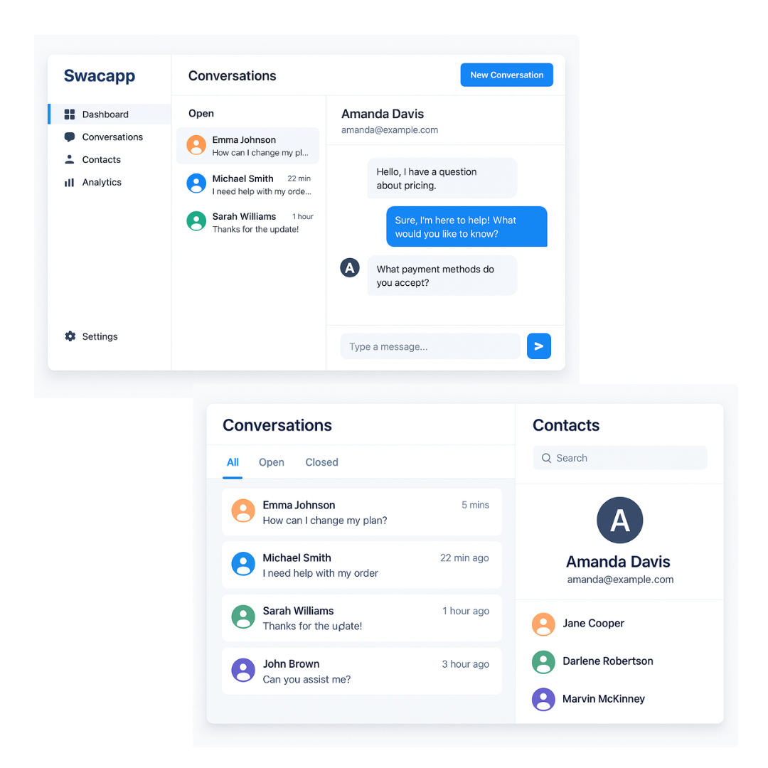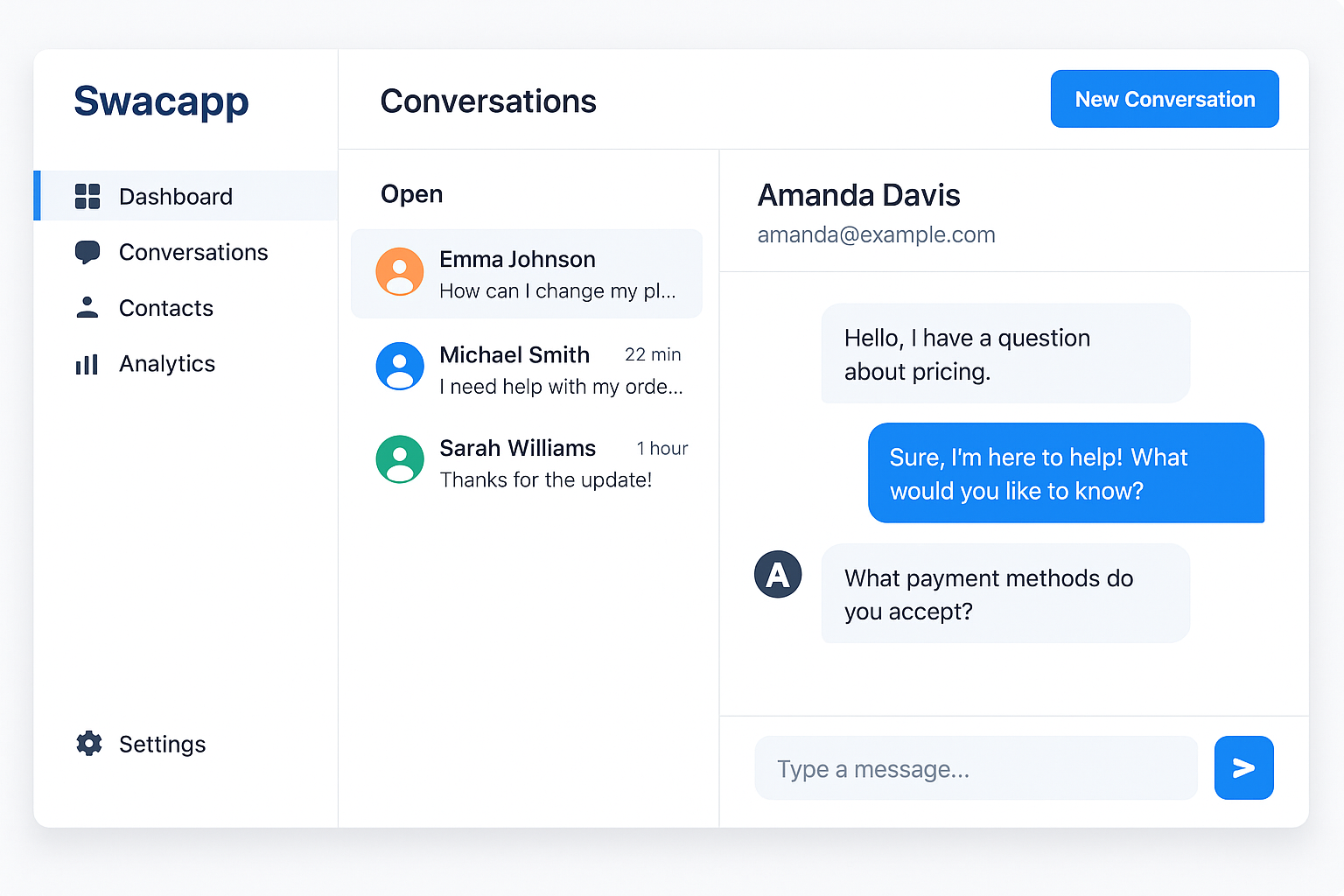 Your customers don’t want to “submit a ticket.” They want a human moment. Swacapp is the live chat widget that makes those moments easy, fast, and friction-free.